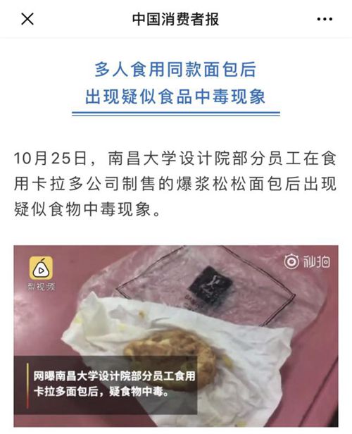 据南昌市市场监管局10月27日消息,26日13时左右,南昌市市场监督管理局接青山湖区市场监管局报告,南大设计院第一设计所发生疑似食物中毒。南昌市各级相关部门立即组织开展医疗救治、流行病学调查、原因调查、监督检查和风险排查等工作。至27日14时,南昌全市多家医院共接收疑似食物中毒50例,现有10例患者留院观察,其余患者均离院回家,无危重病例和死亡病例。经流行病学调查和现场监督检查,初步推断疑似食用卡拉多“爆浆松松”和“流心泡芙”所致。