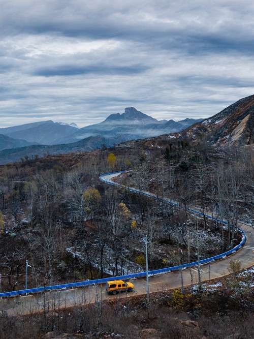11月30日,国网河南电力员工巡视山区供电线路。(姚智军 摄)