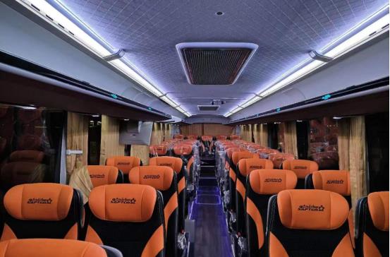 为适应沙特炎热干燥的气候和车辆运营里程长,强度大等特点,宇通研发团队深入当地进行调查研究,对该批车型进行了高度定制化的调整和改进。在动力系统上,宇通创新性地使用AMT变速箱,匹配大马力发动机改善长途驾驶的行驶质感;同时为了给车辆带来更多的承载空间,提升单程载客能力,宇通将600L油箱布置在前轮前方区域,从而为车身留出充足的行李舱空间,满足当地居民长途乘坐携带行李的需求。此外,车辆还搭载了宇通独有的二代热管理技术,有效提高了整车的舒适性和运营经济性,车内则统一配备了42000KCAL空调,制冷速度及制冷效果表现优异,为司乘人员带来了清凉舒适的乘坐体验。