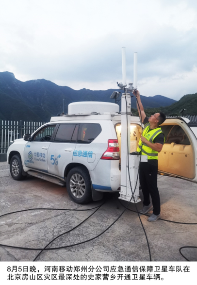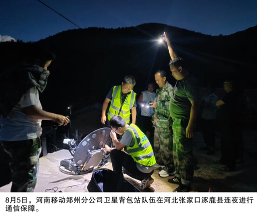 12个小时的日夜兼程,穿越800公里,抱着“与时间赛跑”的信念,8月2日,河南移动第一支通讯保障救援队伍及时将卫星通讯车、卫星背包等设备送达北京、河北等受灾地点,并快速投入到抢险救灾工作。在随后的几天内,河南移动派出通讯保障救援队陆续抵达各个受灾地点。