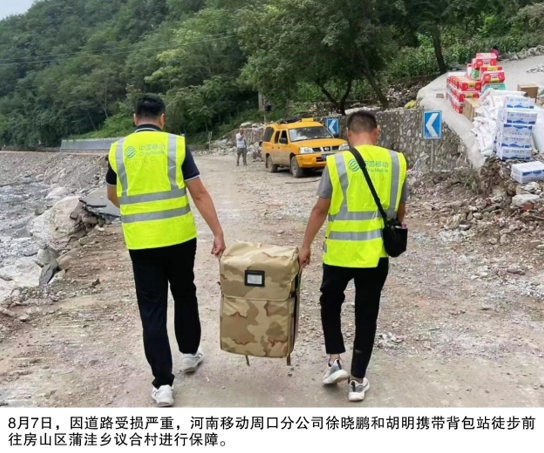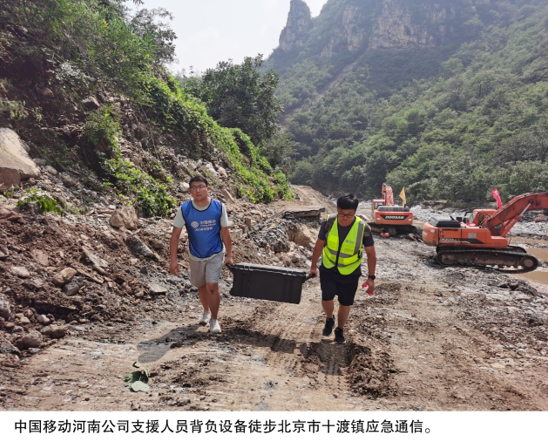 在北京房山区十渡镇,因灾断电、断网、断路,几乎成“孤岛”。按照统一指挥调度,河南移动新乡、许昌分公司支援小组崔松、杨忠齐前往北京房山区十渡镇的失联区域进行通信保障。