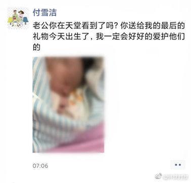 【李文亮妻子今日在武汉生下男婴】6月12日,此前因感染新冠肺炎牺牲的武汉市中心医院眼科医生李文亮的孩子在武汉出生。李文亮的妻子付雪洁朋友圈发文:“老公你在天堂看到了吗?你送给我最后的礼物今天出生了,我一定会好好爱护他们的。”付雪洁告诉荔枝新闻,她于今天凌晨在武汉的一家医院顺产下一名男婴,6斤9两,母子平安。