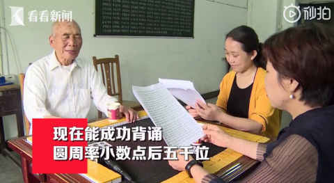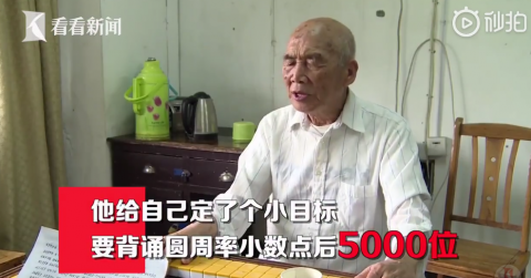 看到孙子因为背诵到圆周率小数点后430位,拿到了全校第一名,他便给自己定了个小目标:背诵圆周率小数点后5000位。
