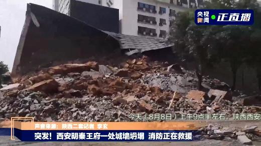 8月8日上午9时27分,由于近日连续降雨影响,位于西安市新城区新城广场西侧,于2009年实施的明秦王府城墙遗址修复保护砌体约20米发生坍塌,现场一辆公交车、三辆私家车受损,有四名群众被坍塌时溅起的砖石擦伤,已送到就近医院治疗。