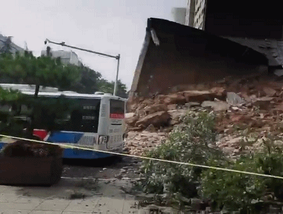 据现场视频显示,城墙坍塌时,一辆公交车刚好开过,公交车未被埋,但另有其他车辆被砸受损。