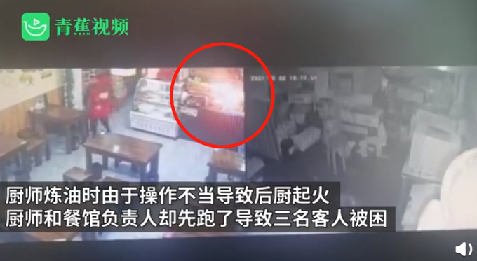 【餐厅起火老板丢下顾客逃跑被拘】近日,宁夏银川,一家餐厅厨师炼油时由于操作不当导致后厨起火,厨师和餐馆负责人却先跑了,导致三名顾客被困。经过119及时救援,餐厅大火被成功扑灭,三名顾客被救出。事后,因未尽到组织引导顾客疏散的义务,警方分别给予餐厅负责人行政拘留5日,厨师行政拘留10日的处罚。