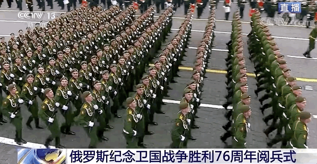 俄罗斯联邦国防部长绍伊古检阅方阵,并向战士们致以胜利日问候,战士们高喊“乌拉!”回应,共同纪念卫国战争胜利76周年。