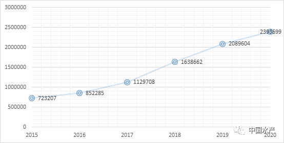 图3:2015~2020年小龙虾养殖总产量曲线图(单位:吨)