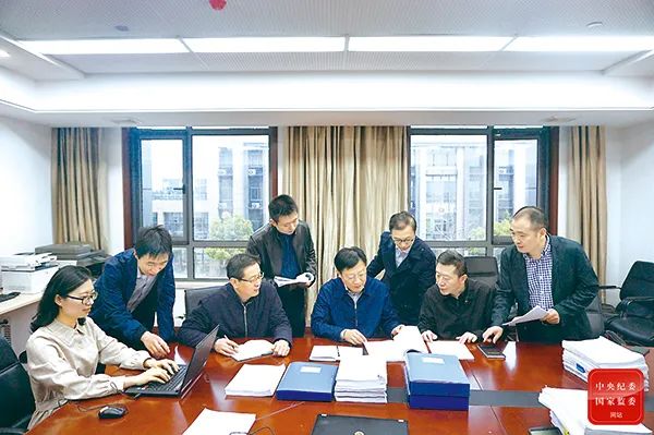 安徽省纪委监委专案组工作人员在一起省农商行系统案件移送审理前,讨论完善审查调查报告。许怡然摄(图片来源:中央纪委国家监委网站)