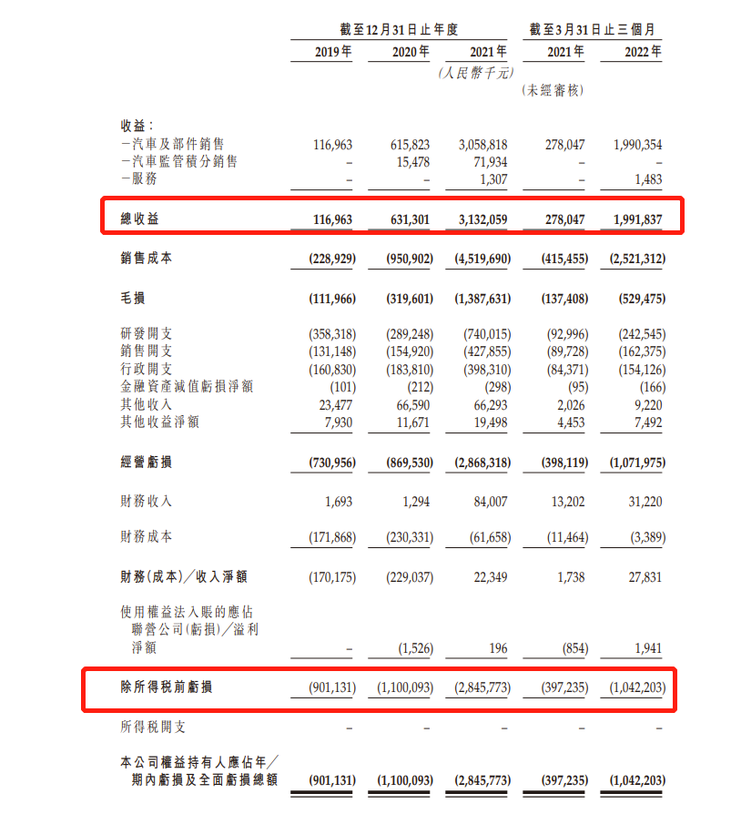 零跑收入分别来自汽车及部件销售、汽车监管积分销售,以及服务,共3部份。公司今年首季录19.91亿元收益,惟当中99.9%来自汽车及部件销售,经调整后净亏损为9.69亿元。去年全年,零跑经调整后净亏损26.28亿元,按年扩大1.8倍。