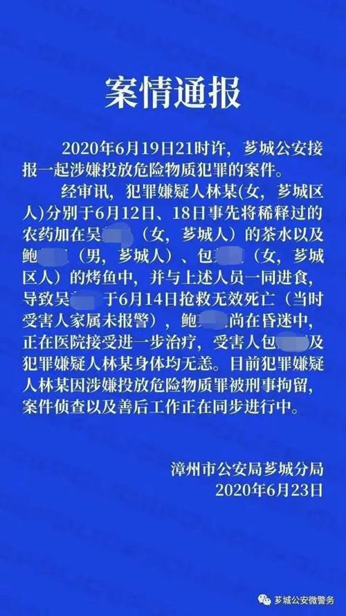 法院审理查明:林某因母亲与被害人吴某(包女士母亲)结识十余年而与吴家一家交好。并于2017年起以投资工程等为名,陆续多次向吴某及通过吴某介绍的友人借贷高额款项。2020年6月初起,林某应缴到吴某家中共同居住。2020年6月12日,林某因无力欠还吴某及通过吴某介绍所借的款项,趁吴某外出,将事先在网上购买的的农药稀释后倒一部分到吴某平常喝水的养生壶内,致使吴某喝下后当天即上吐下泻,直至次日19时许被送往医院救治,于2020年6月14日凌晨经抢救无效死亡。