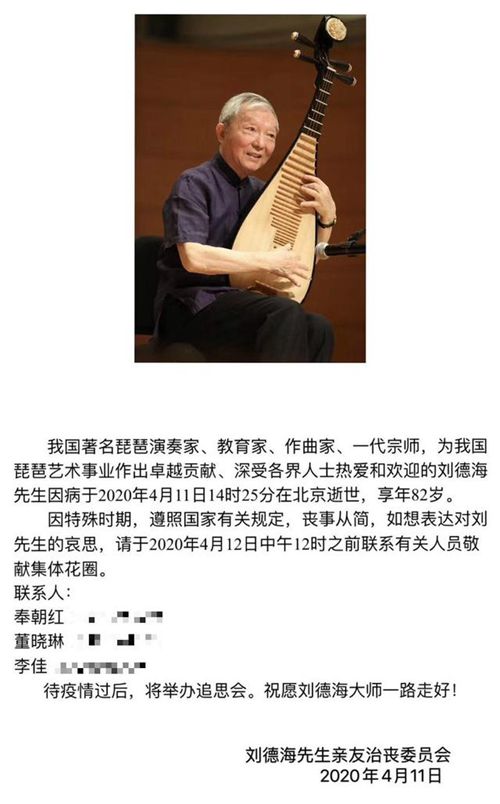 4月11日下午,一条“琵琶大师刘德海去世”的消息传遍网络。随后,红星新闻记者从刘德海的一名学生处证实了这一消息。“我也是今天下午知道老师去世的消息,现在正准备前往北京,送老师最后一程。”据了解,著名琵琶演奏家、教育家、作曲家刘德海是11日下午14:25在北京因病逝世的,享年82岁。刘德海生前曾多次来蓉举行演出,非常喜欢成都。