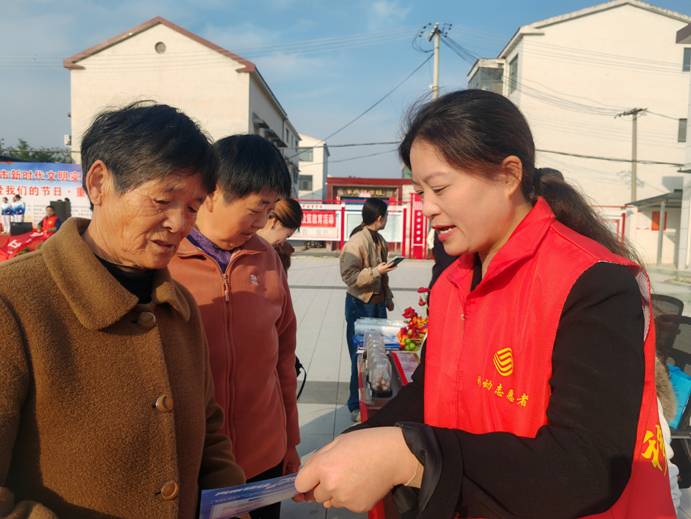 (移动志愿者在蒲东林庄村社区广场开展送反诈活动)