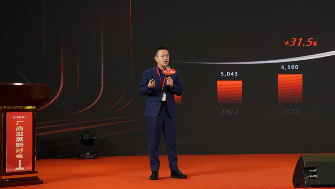 双汇发展副总裁、肉制品事业部总经理赵国宝在主题报告中,全面回顾了2025年双汇肉制品业的生产经营成果,并明确新一年的工作目标与推进思路。同时对新一年的销售政策、激励措施及市场运营策略进行了深入阐释。