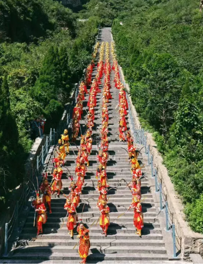 2025年首届全国大圣文化艺术周暨中国猴山猴王争霸赛期间,五龙口景区摇身一变成为沉浸式剧场。猴王争霸赛上,20名选手既复刻经典猴戏的灵动神韵,又大胆融入AI、魔术等创新元素,再加上猕猴在林间肆意穿行、与人嬉戏,造就“人在景里、身在戏中”的独特体验。此外,“大圣文化进校园”活动,让文化传承在欢声笑语中生根发芽。