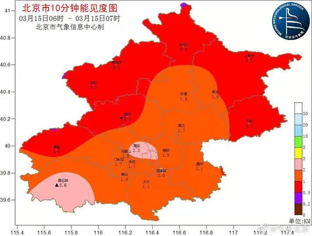 目前,城区大部分地区能见度在1-2公里,北部地区小于1公里,能见度较差,外出一定注意交通安全,做好健康防护。冷空气已影响到北京西部和西北部,并伴有明显的沙尘天气,未来自西向东影响北京市,大部分地区将出现大风和沙尘,预计将持续一天。