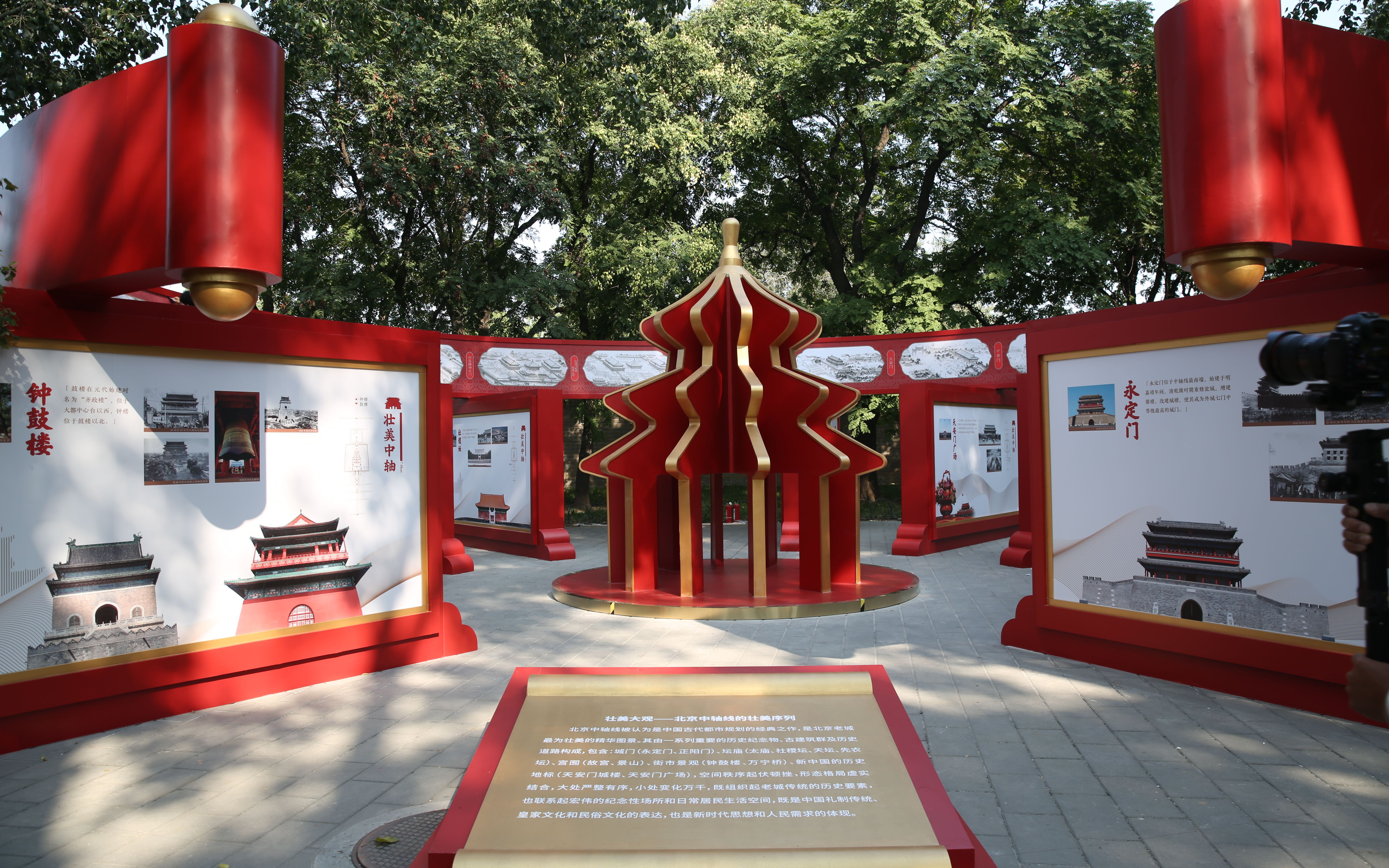 公园展示活动以“大国轴线的时代变迁”为主线,通过“中轴密码”和“中轴规划”两个展区,展现北京中轴线的伟大创意和都市繁华之美,其中包括中轴线上12处遗产点和北京拥有的七处“世界文化遗产”等内容。