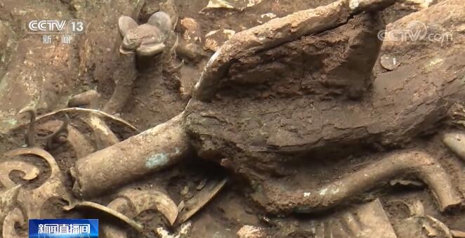 三星堆3号坑再次出土一件青铜神树 耗时4个月才提取出土